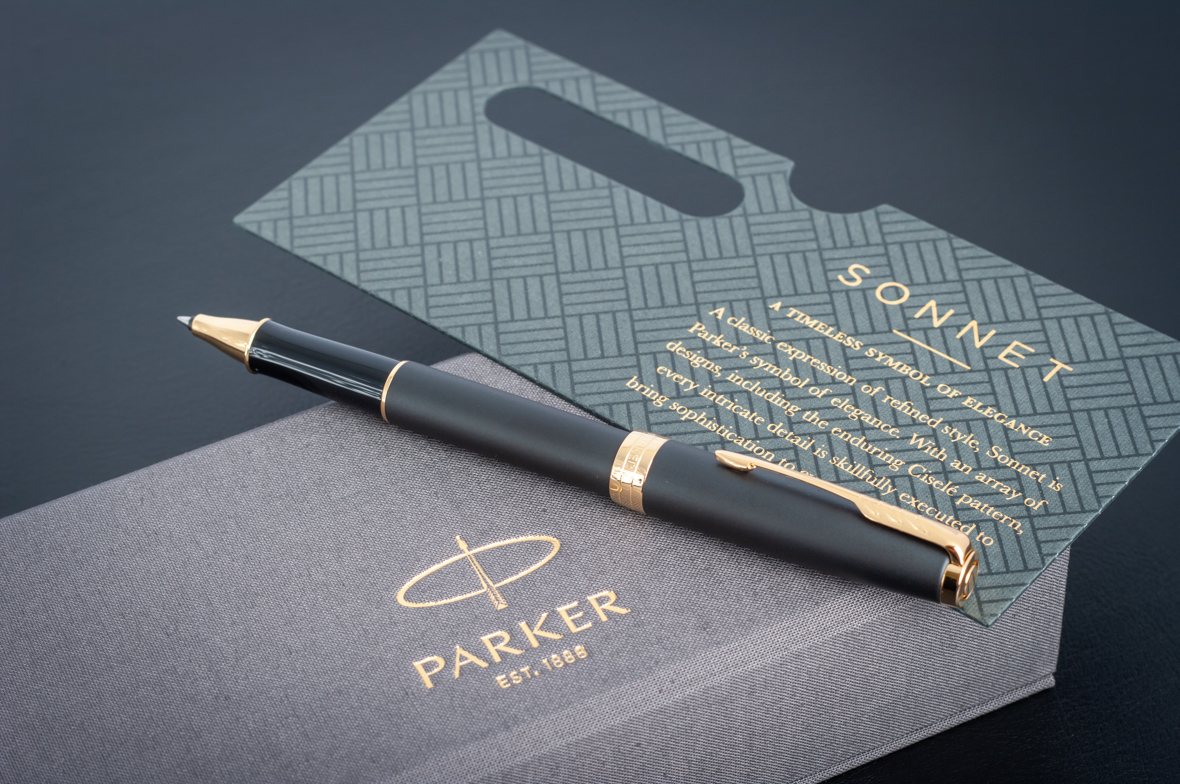Ручка роллер Parker Sonnet Matte Black GT от официального дилера Parker в Магнитогорске. Вы можете дополнительно заказать гравировку, которая подчеркнет Вашу оригинальность и придаст памятность статусному подарку. Все ручки Паркер поставляются в фирменном футляре.